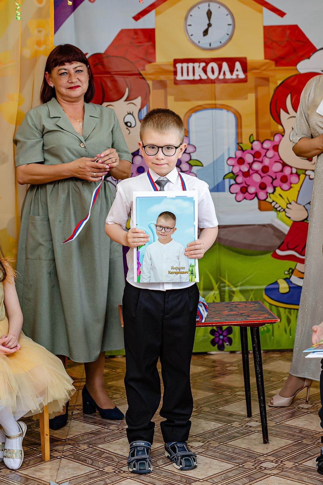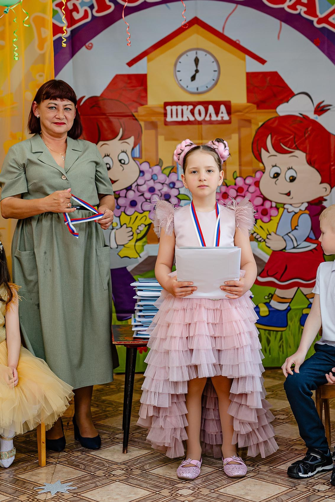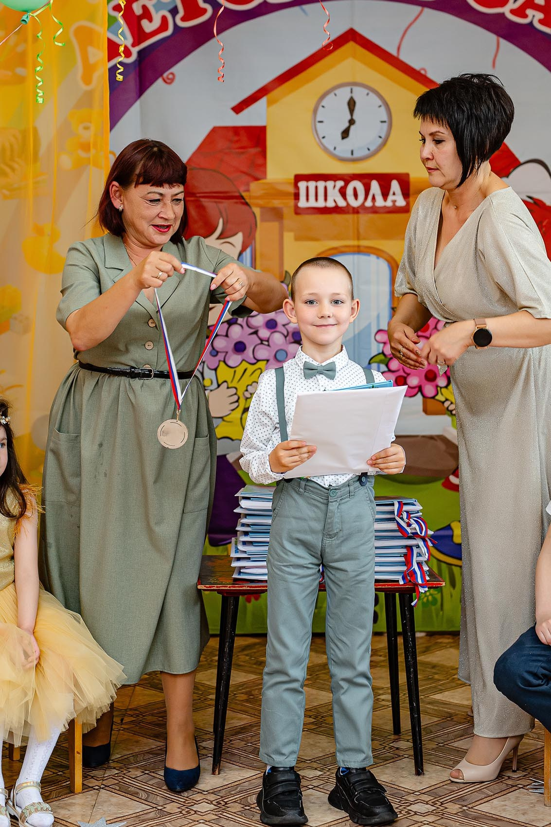 Можно сказать классический пример фотосъемки с торжественной частью + фото с родителями.