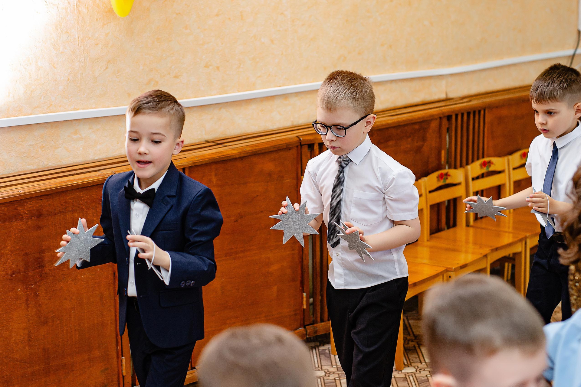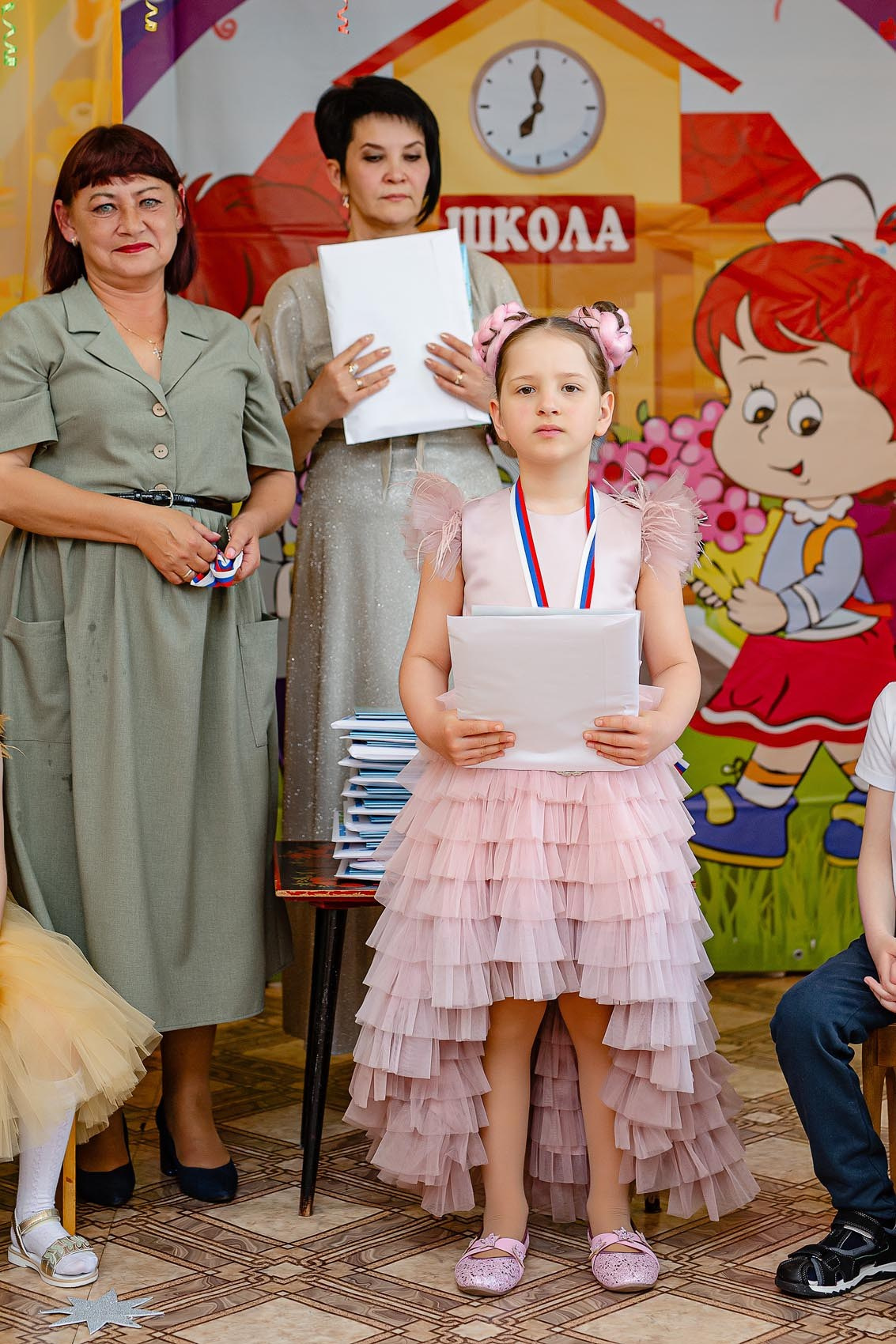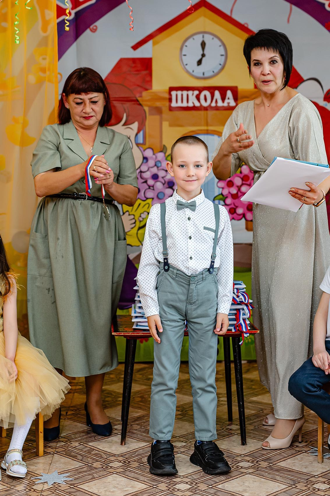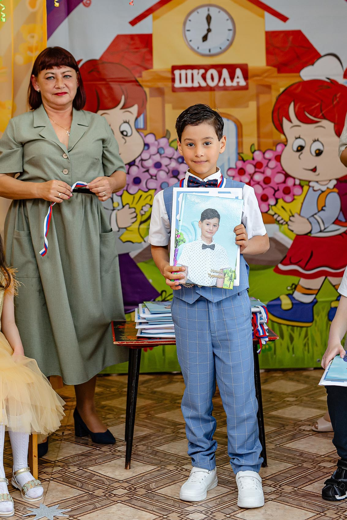 Можно сказать классический пример фотосъемки с торжественной частью + фото с родителями.